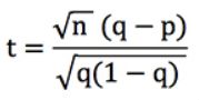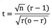 Let's rewrite the t-score formula above (assuming that all our bets have the same odds, o). Since we know that r = q / p, where p is the implied probability of the bookmaker's odds (i.e. 1/o) and q is your estimated probability (which is 'true' if your prediction model is accurate), we can show that :