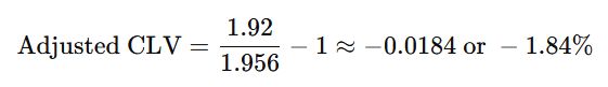 However, some mathematicians and sports betting analysts argue that calculating Closing Line Value (CLV) should not be limited to a simple comparison between the odds taken and the closing odds but should also account for the bookmaker's margin.