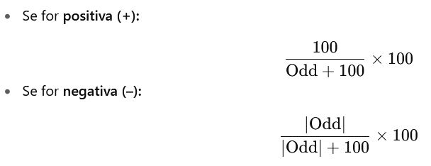 Cada odd representa uma probabilidade implícita, ou seja, a chance estimada de o evento acontecer.
