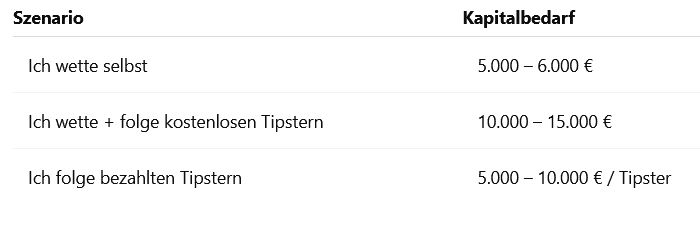 🔢 Man benötigt etwa 80–100 Wetten pro Monat, um das Abo zu decken und Profit zu erzielen → Das erfordert ein Kapital von ca. 5.000 € pro Tipster.