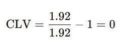 La CLV basique est de 0%, car les cotes au moment du pari et à la clôture sont identiques.
