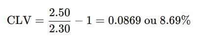 CLV Positive : Si votre cote initiale est supérieure à la cote de clôture (2.50 > 2.30), vous avez une CLV positive.